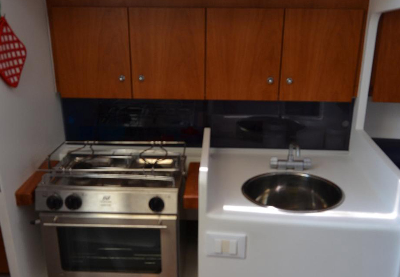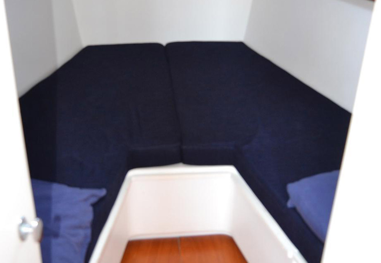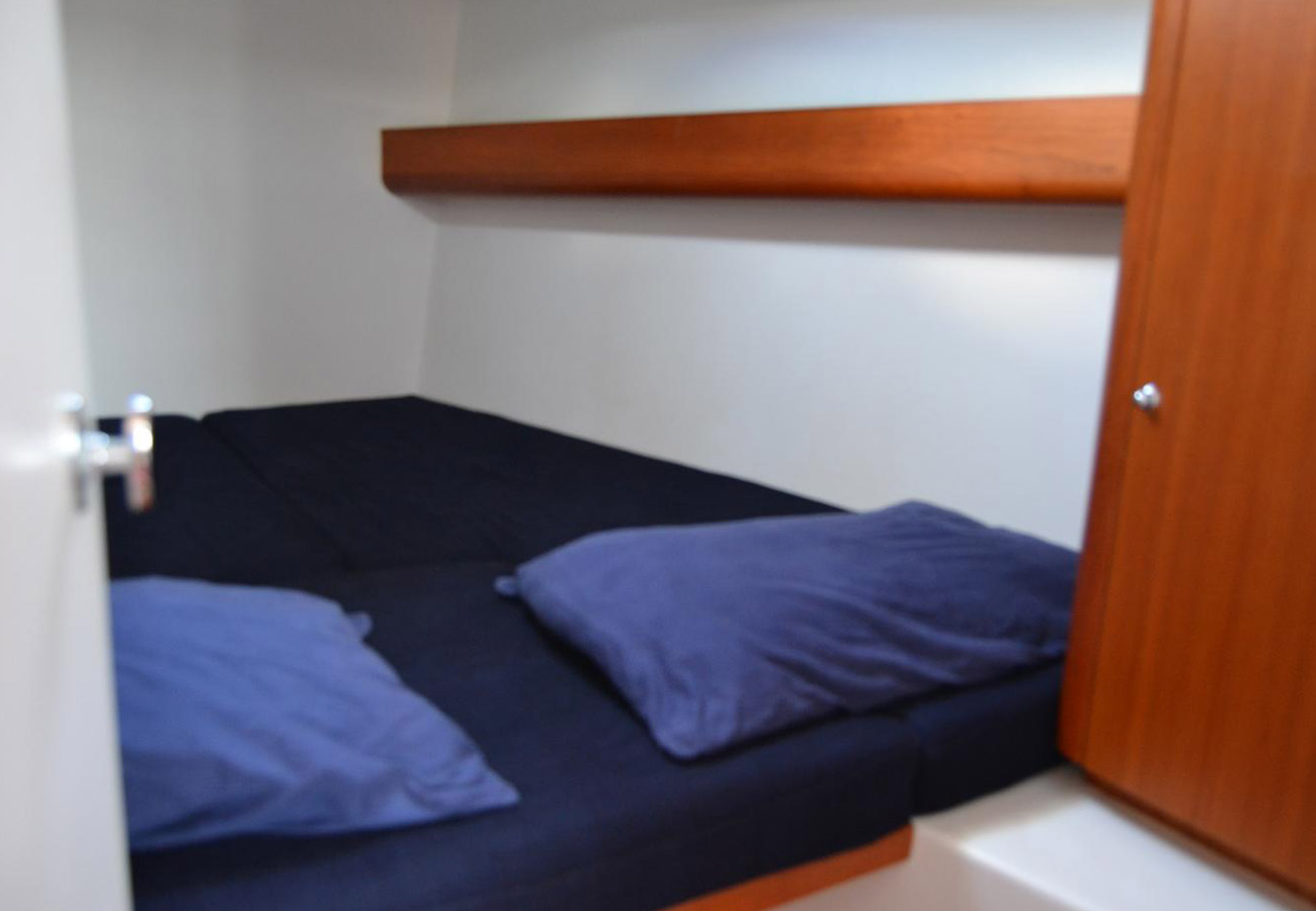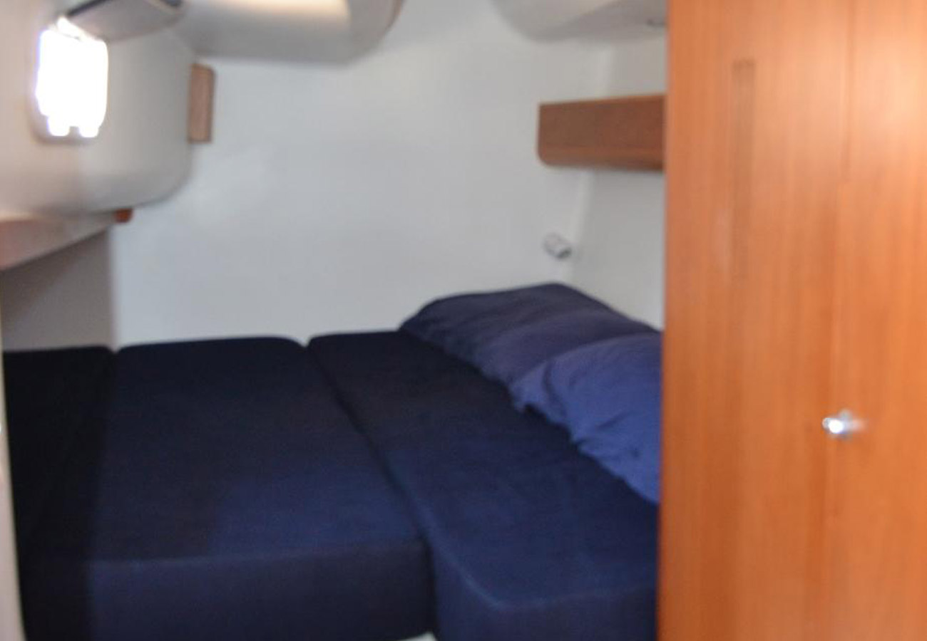 La cabina di poppa è molto spaziosa, disposta in senso trasversale in modo che entrambe le persone possano avere la testa nella parte alta della cabina e non nella parte bassa sotto il pozzetto.
